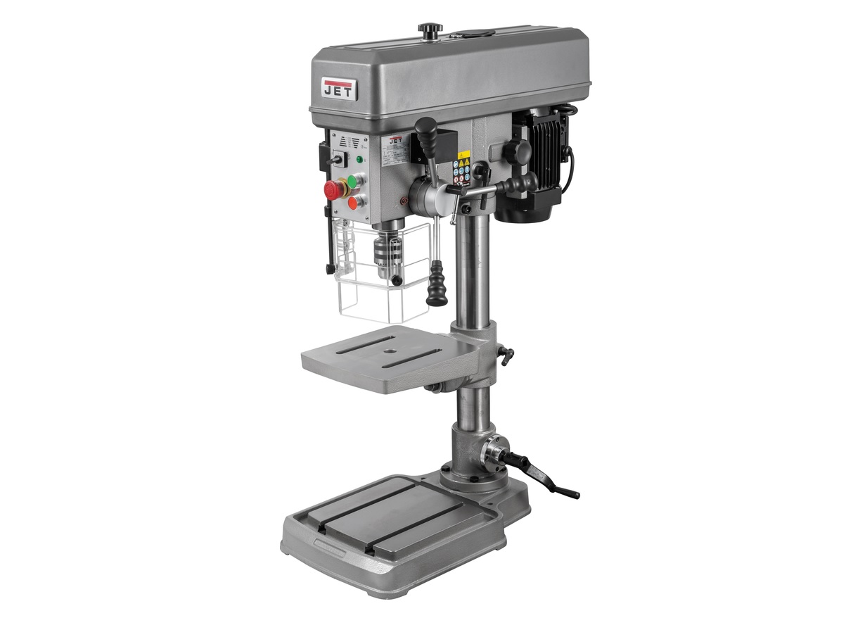 Станок сверлильный настольный IDTP-16 возглавил новую линейку станков JET с возможностью нарезать резьбу. Данный станок производится в Китае, что позволяет снизить стоимость изготовления, а это непосредственно влияет на цену станка в России. Станок оснащен мощным двигателем 500Вт и способен в режиме долгих нагрузок нарезать резьбу до М12. На станке установлен асинхронный двигатель, на который установлен шкив с 5-я ручьями, перекидывая ремень по ручьям шкива, вы меняете скорость от 200 до 2500 оборотов в минуту. Данное решение в тандеме с легкой натяжкой двигателя и надежной фиксацией, позволяет сохранить и передать хороший момент на шпинделе. Основание станка отлито из серого чугуна, станок устанавливается на верстак или стол, подстолье и фиксируется болтами. Надежная фиксация позволяет уменьшить вибрации. В основание вставляется толстостенная труба, на которую непосредственно крепится голова сверлильного станка. В управление станок достаточно прост.