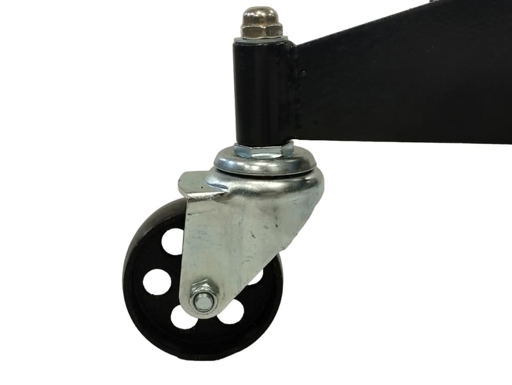 - 4-х опорное широкое основание на металлических колесиках делает конструкцию устойчивой и маневренной.