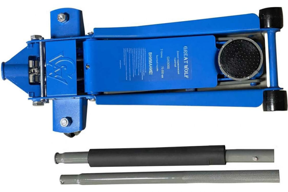 Низкопрофильный гидравлический подкатной домкрат Great Wolf 3 т, 75-500 мм GW-3000 используется для плавного поднятия груза, для шиномонтажа или выполнения работ по ремонту ходовой части.
