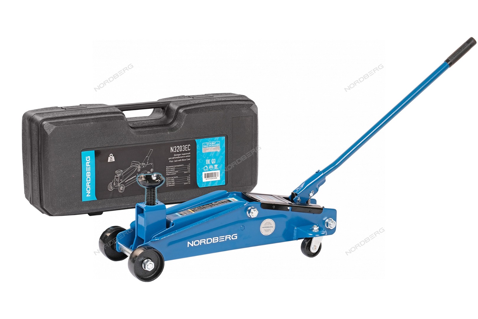 Домкрат подкатной для автолюбителя 3т в кейсе, Н=192-533мм NORDBERG N3203EC характеристики