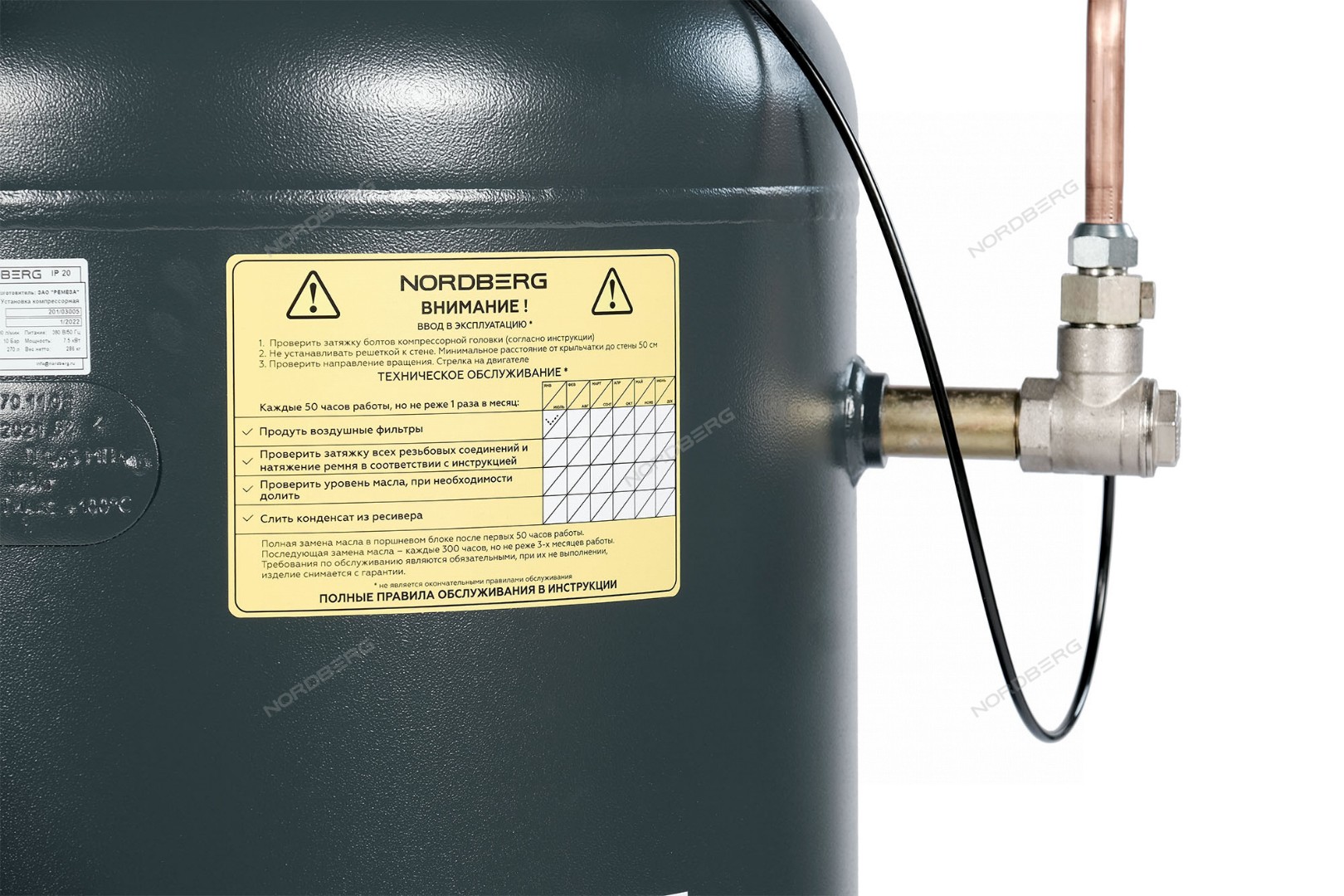 Компрессор вертикальный поршневой с ременной передачей 380В, ресив. 100л, 580л/мин NORDBERG NCPV100/580 характеристики