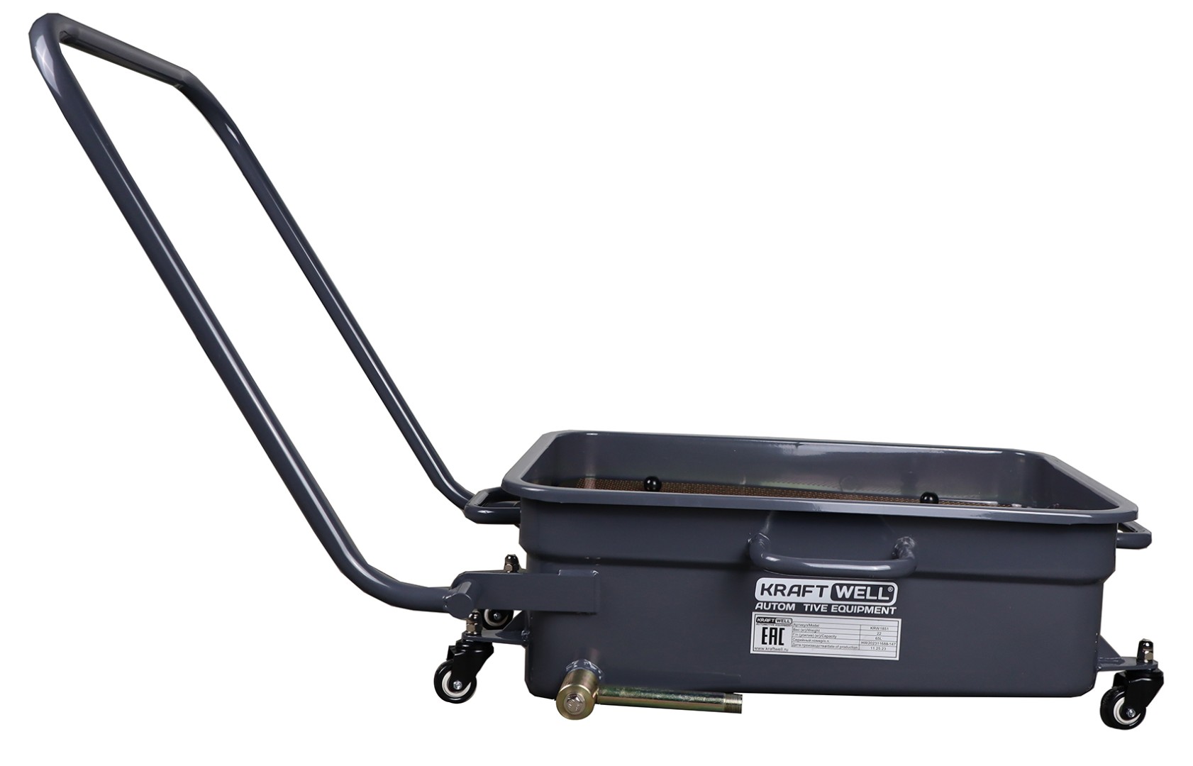 Емкость для сбора отработанного масла, объем 65л, на колесах KraftWell KRW1851 характеристики