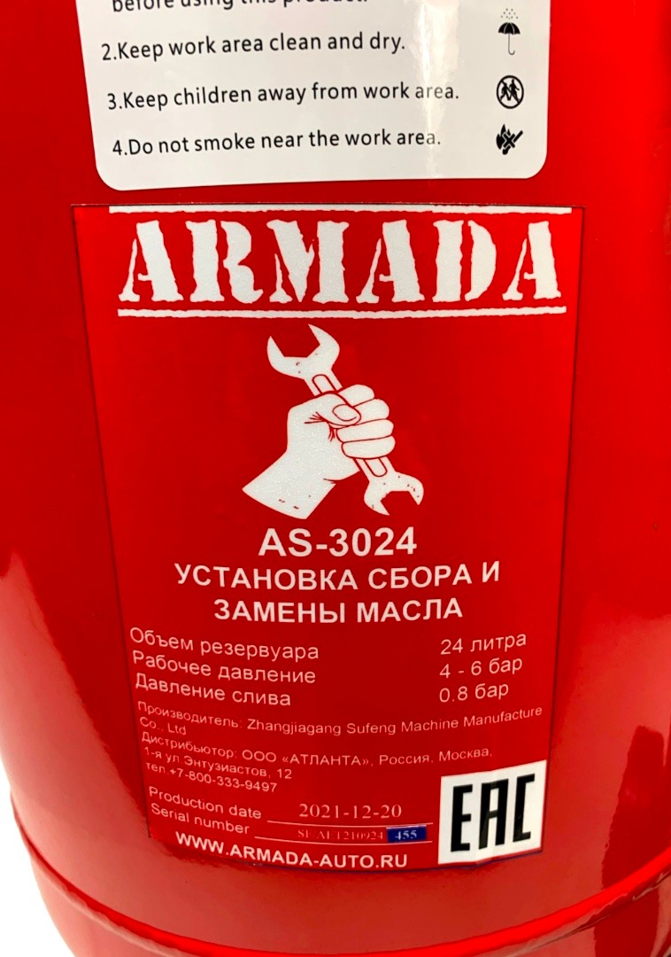 Установка сбора и замены масла 24л ARMADA AS-3024 характеристики