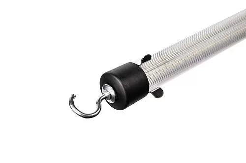 - Для обеспечения удобства крепления светильника в зоне проведения работ светильник снабжен поворотным крюком и специальным магнитным креплением.