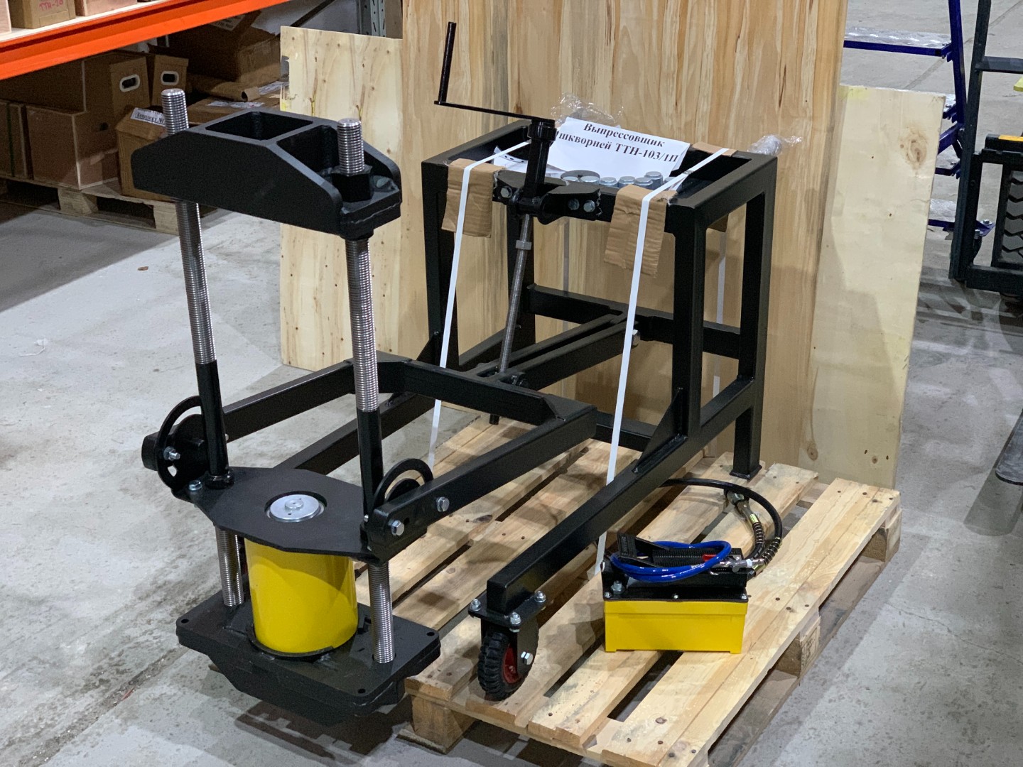 Съёмник шкворней для грузовых авто 100 тонн на тележке ( с пневмогидравлическоким насосом в комплекте) garo-titan ТТН-101П характеристики