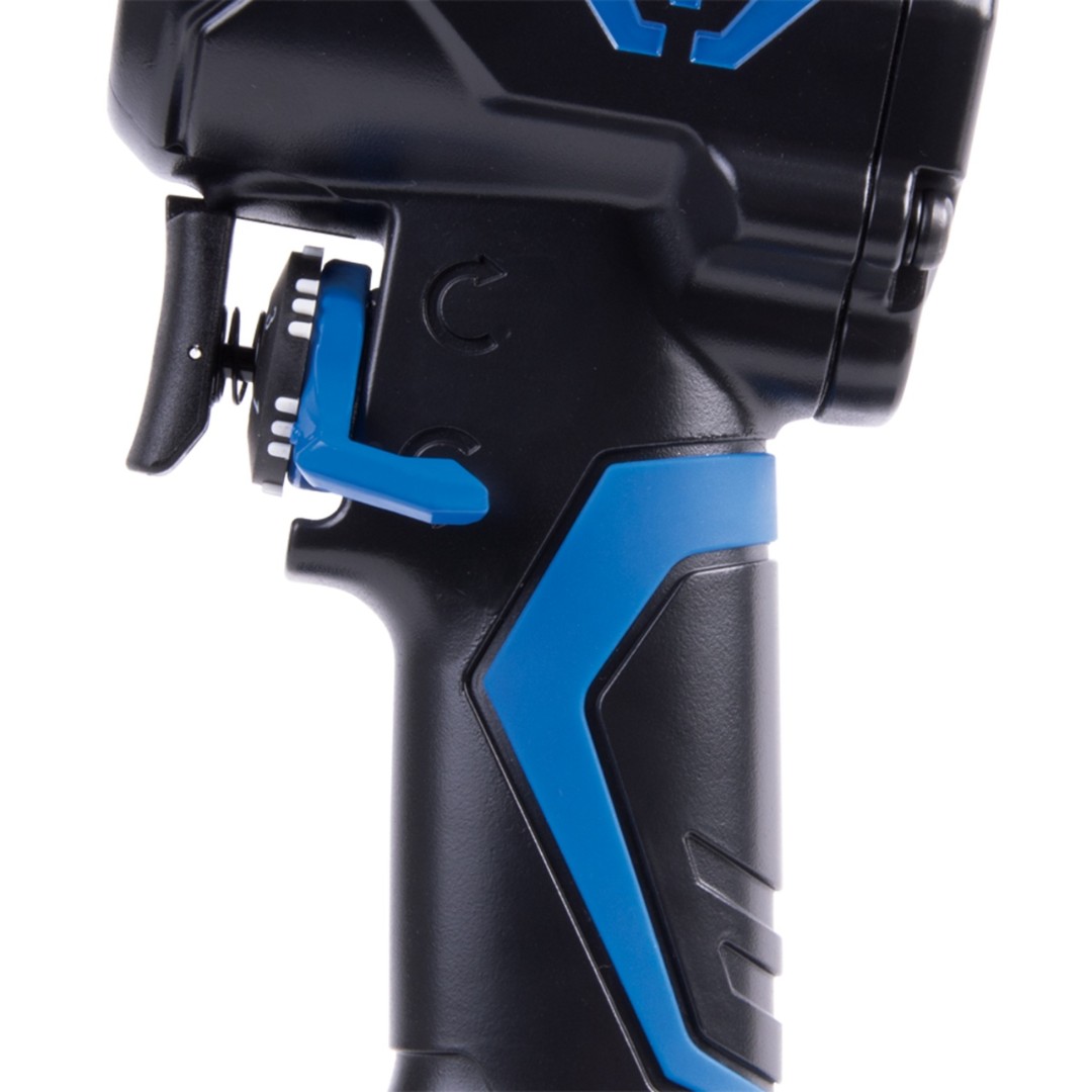 Корпус гайковёрта – прочный алюминиевый сплав. Эргономичная рукоятка гайковёрта в сочетании с отличной сбалансированностью позволяет надёжно держать инструмент в руке во время работы.