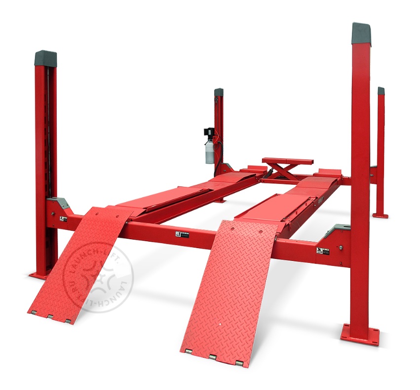 Гидравлический 4-х стоечный подъемник для регулировки развала-схождения. Грузоподъемность 4 тонны (5.5 тонны для модели 455W), имеет предустановленную траверсу 2,0 тонны (2.7 тонны для 455W) с пневматическим управлением. Управление стопорами — пневматическое с центрального пульта. Подходит для всех датчиковых стендов регулировки развала-схождения и стендов 3D.