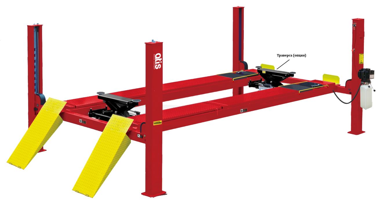 Подъемник четырехстоечный г/п 4000 кг. платформы для сход-развала с траверсой KraftWell KRW4WL