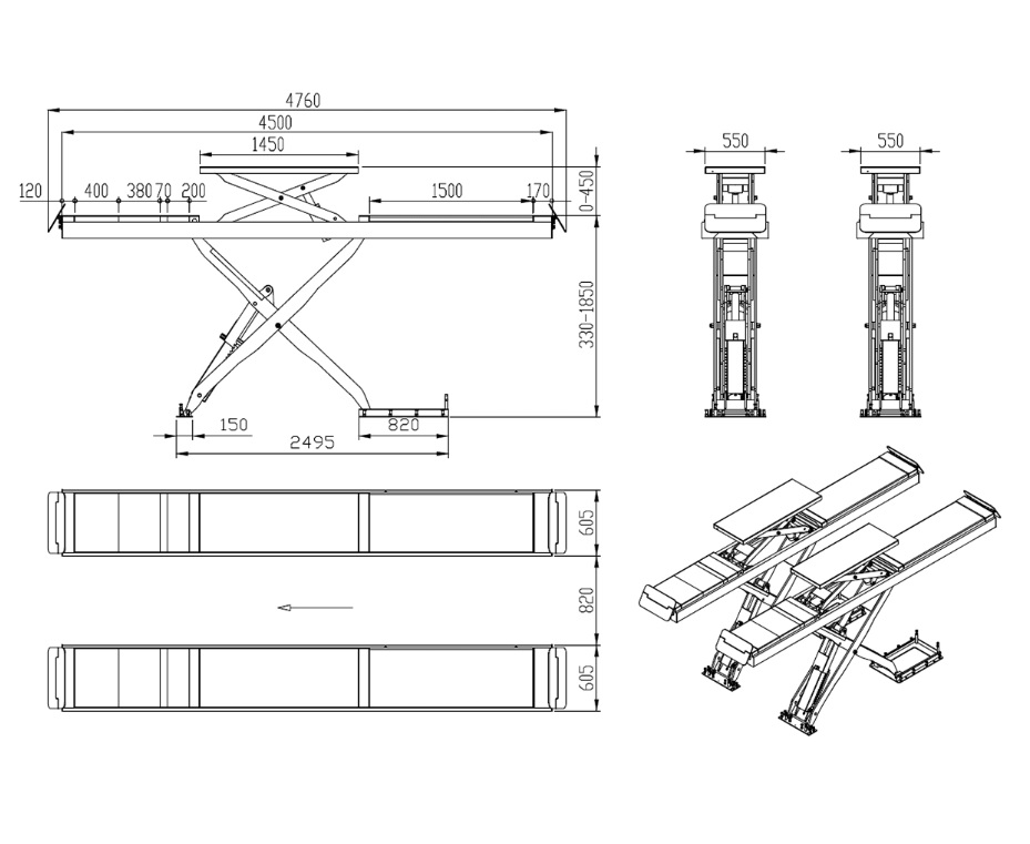 Ножничный подъемник для сход-развала г/п 4т. LAUNCH TLT-840 WA GL01950 характеристики