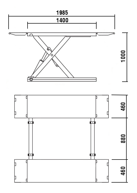 Подъемник ножничный, электрогидравлический, напольный шиномонтажный для легковых автомобилей и легких грузовиков.