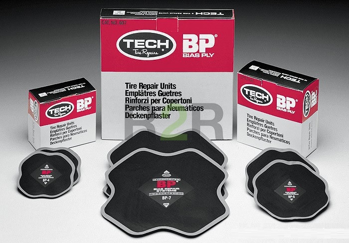 Диагональная заплата BP артикул 606BK подходит для ремонта повреждений в области протектора, в плечевой зоне и боковине, в камерных и бескамерных шинах с диагональным направлением корда, где каркас состоит из одной или нескольких пар слоев корда, расположенных так, что нити соседних слоев перекрещиваются. Диагональная заплата BP-6 имеет прослойку резины между кордом и серым адгезивным слоем резины, которая способствует смягчению удара. Конструкция заплаты позволяет устанавливать ее близко к борту, устраняя необходимость в установке отдельного пластыря на боковой стенке покрышки. Заплата ВP-6 прекрасно держит давление воздуха в бескамерных шинах.
