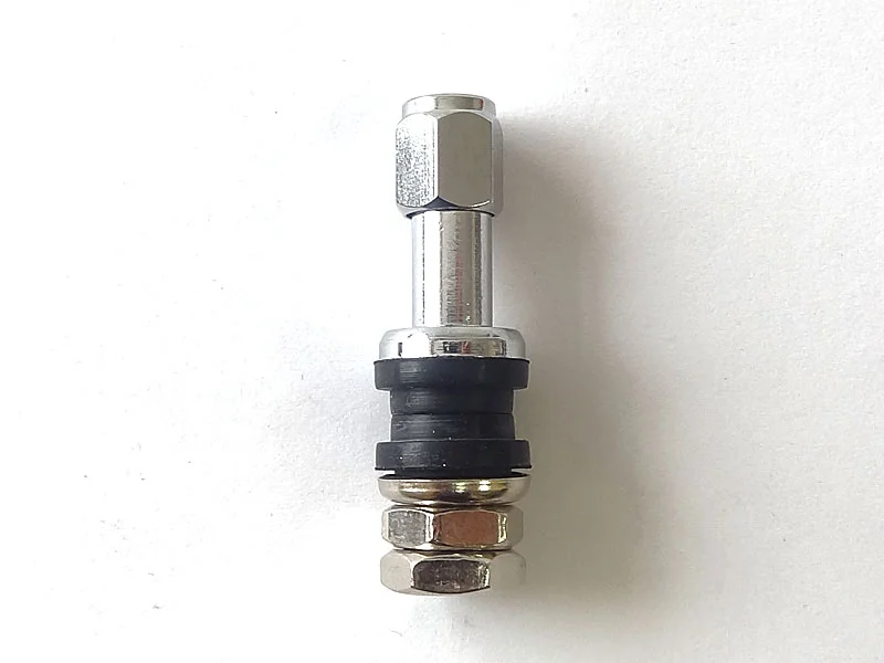 Металлический хромированный вентиль V-4 (TR43E) используется на легковых кованных и литых дисках для накачки (подкачки) и измерения давления в шине. Вентиль состоит из металлического корпуса, двух гаек, шайбы, двух резиновых уплотнительных колец, защитного колпачка и золотника.