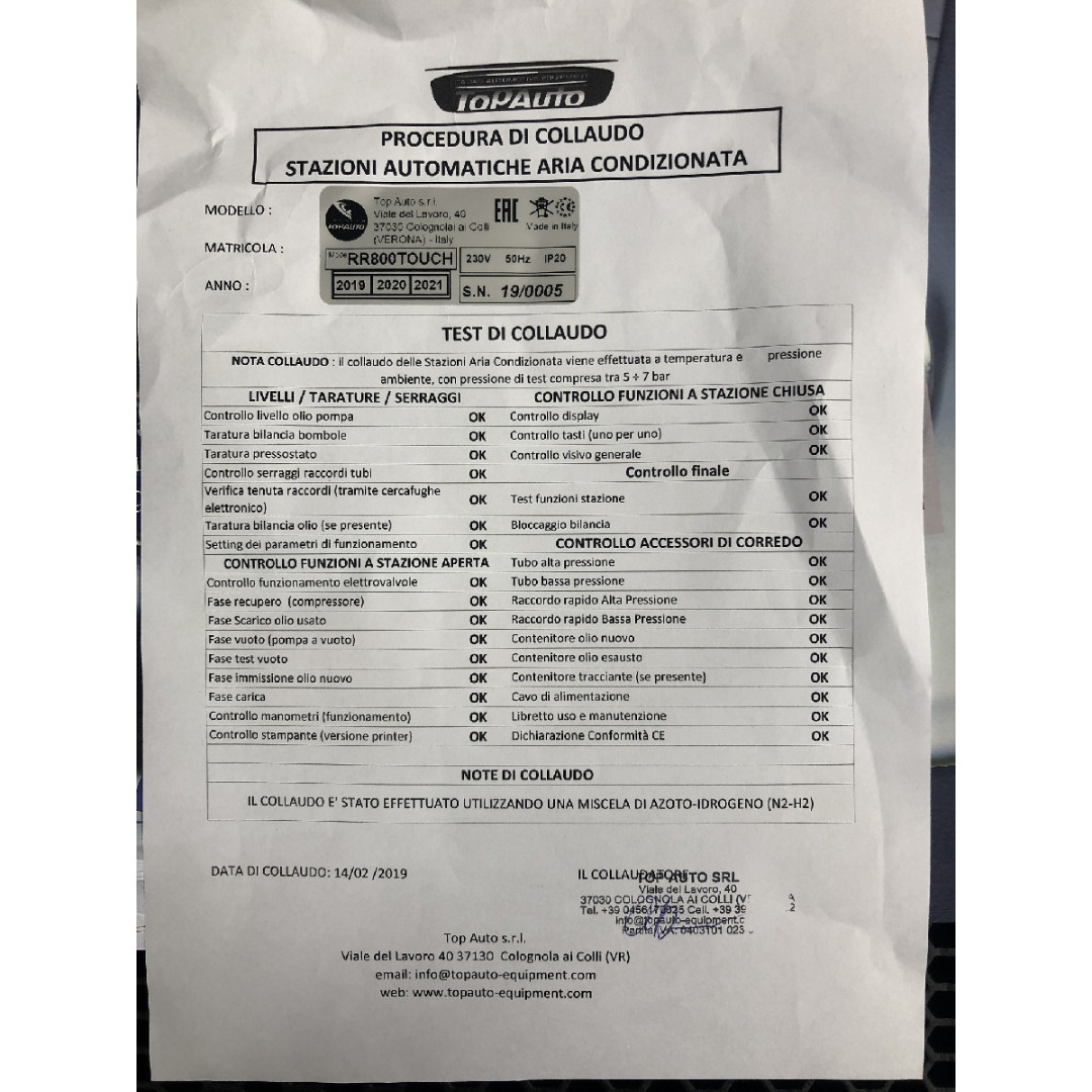 Станция для заправки автомобильных кондиционеров TopAuto (Италия) RR800Touch характеристики