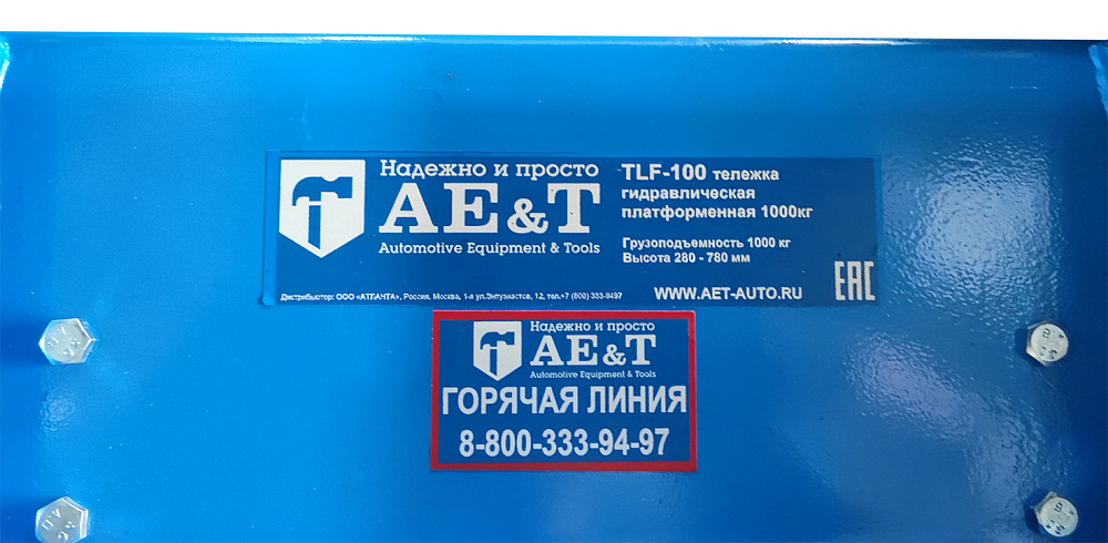 Тележка гидравлическая платформенная 1000 кг AE&T TLF-100 характеристики