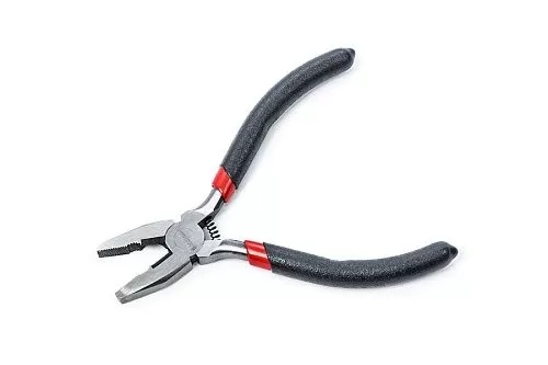 Мини-плоскогубцы — слесарный инструмент для работы с мелкими деталями и комплектующими. Применяются для фиксации крепежа, загиба и выравнивания проволоки или узких пластин.