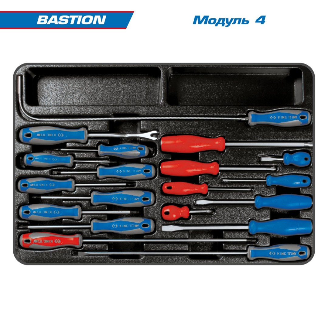 Набор инструментов 204 предмета, "bastion", в серой тележке king tony 9g38-100mrg характеристики