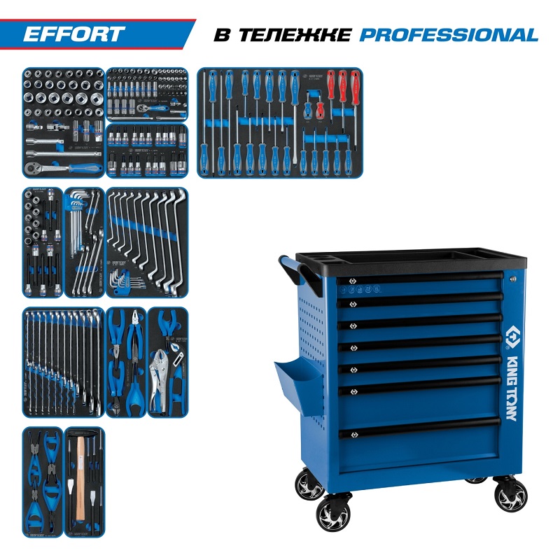 Набор инструментов 235 предметов, "effort", в синей тележке king tony 9g38-235mrvb характеристики