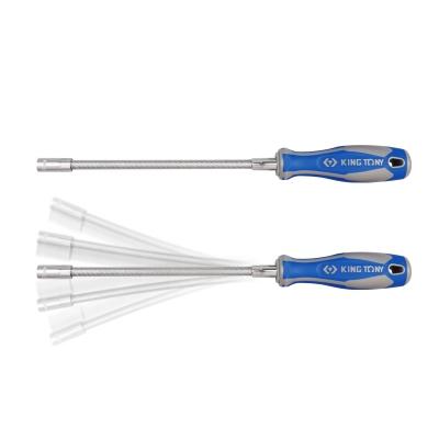 Отвертка торцевая 6 мм, 300 мм, гибкая, для хомутов KING TONY 1453-06. Отвёртка предназначена для работы с крепёжными хомутами, фиксирующими различные патрубки, к примеру, патрубки системы охлаждения автомобиля. Гибкий шток отвёртки позволяет использовать её в местах с ограниченным доступом к крепежу.