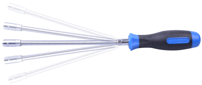 Отвертка торцевая 7 мм, 300 мм, гибкая, для хомутов KING TONY 1453-07. Отвёртка предназначена для работы с крепёжными хомутами, фиксирующими различные патрубки, к примеру, патрубки системы охлаждения автомобиля. Гибкий шток отвёртки позволяет использовать её в местах с ограниченным доступом к крепежу.