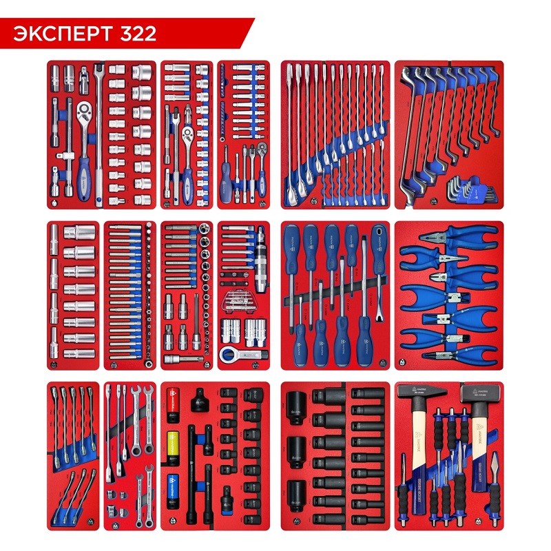 Набор инструментов 323 предмета, "эксперт 322", для тележки, 16 ложементов мастак 5-00322 характеристики