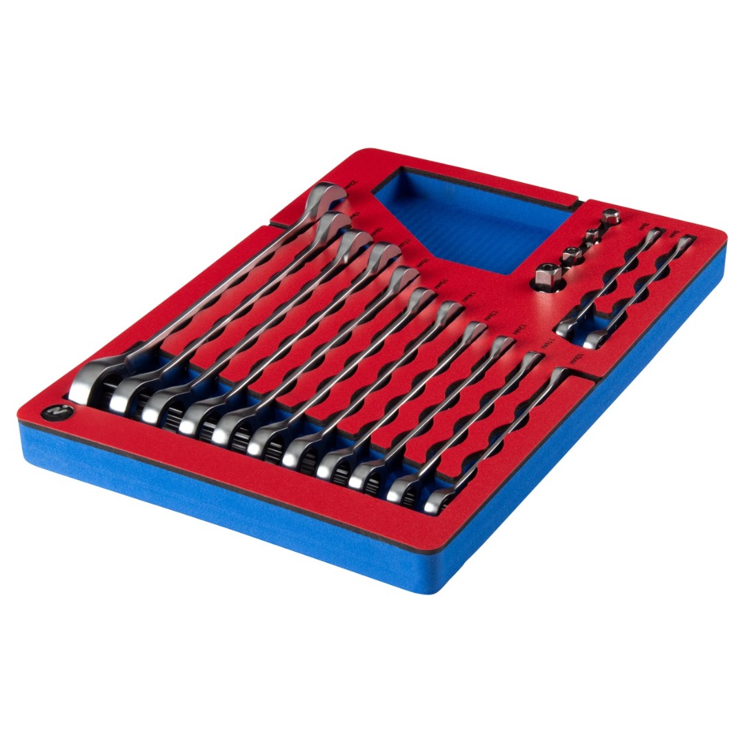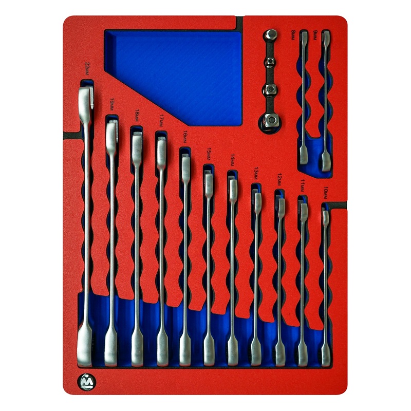 Набор комбинированных трещоточных ключей, 8-22 мм, ложемент, 17 предметов МАСТАК 5-21317
