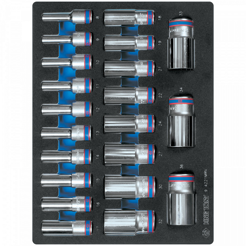 Набор глубоких торцевых головок 1/2, двен-е 8-36 мм, ложемент, 21 пр. KING TONY 9-4221MRV характеристики