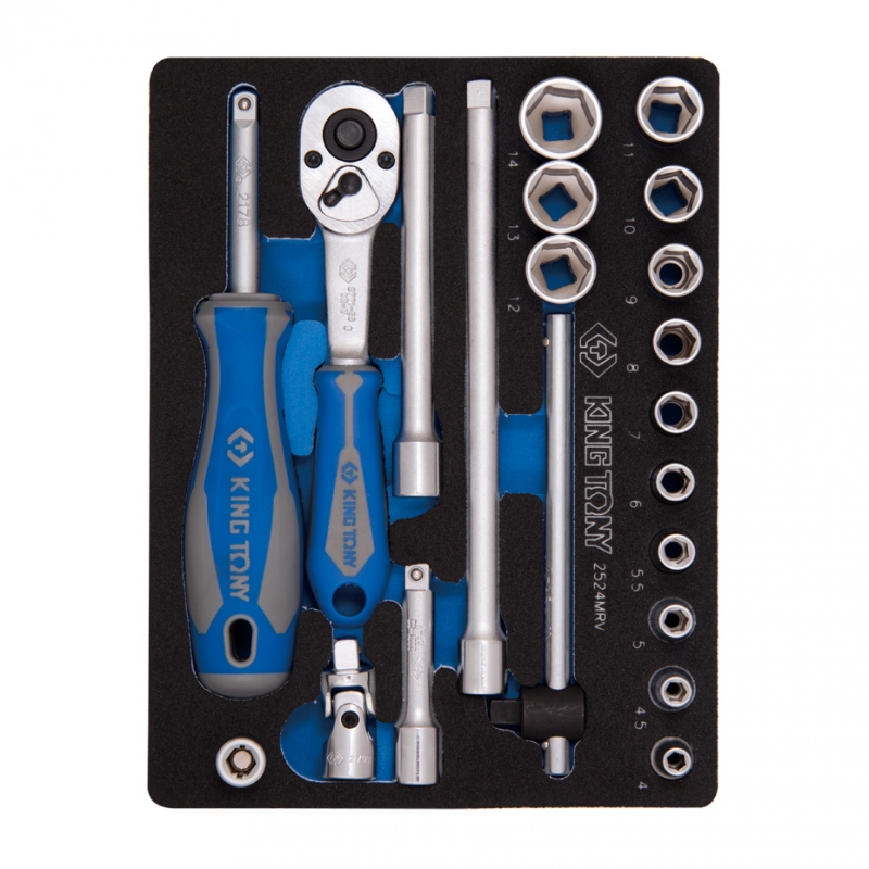 Набор торцевых головок с принадлежностями 1/4, шест-е, 4-14 мм, 21 пр. KING TONY 2524MRV характеристики