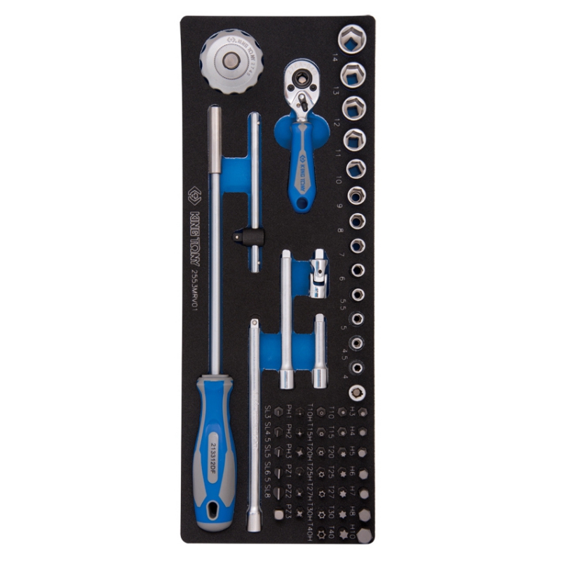 Набор торцевых головок с принадлежностями 1/4, шест-е, 4-14 мм, 55 пр. KING TONY 2553MRV01 характеристики