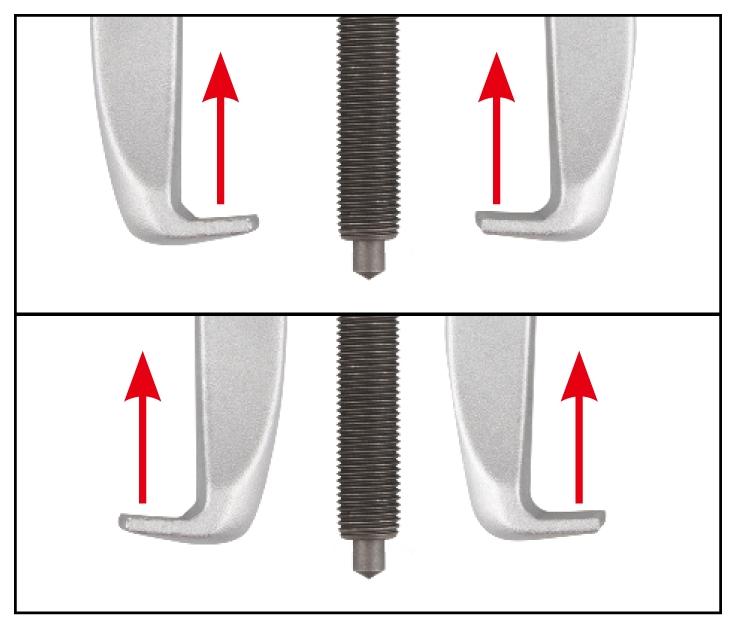 Демонтаж подшипников, шкивов и прочих деталей, запрессованных в обойму или установленных на вал. Применение съёмника помогает демонтировать деталь без перекоса, с соблюдением соосности.