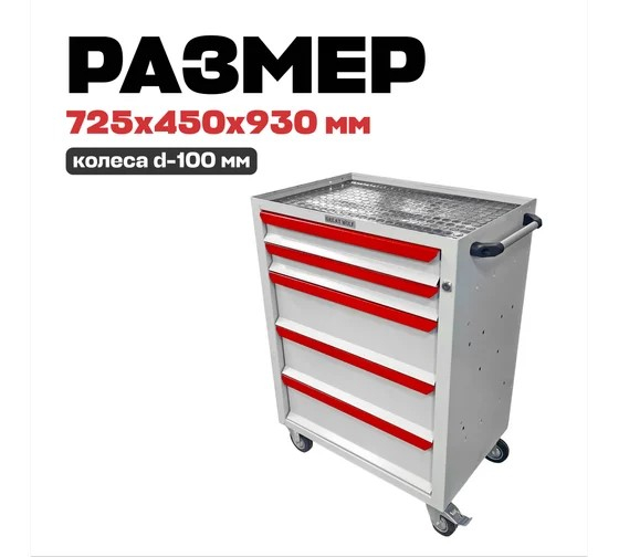 Инструментальная тележка Great Wolf 5 ящиков, цз, колеса с тормозом, белая GWT-K5W характеристики