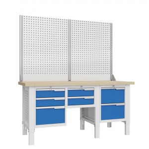 Регулировка рабочего места по высоте осуществляется в диапазоне от 700 до 950мм с шагом 25мм. Предусмотрена возможность тонкой регулировки усиленным резьбовым подпятником. Нагрузка на ящики верстака - до 40 кг, на полки - до 60кг. Общая распределенная нагрузка на рабочую поверхность 1500кг. Имеет возможность стыковки в единую рабочую поверхность с верстаками серии Constructor