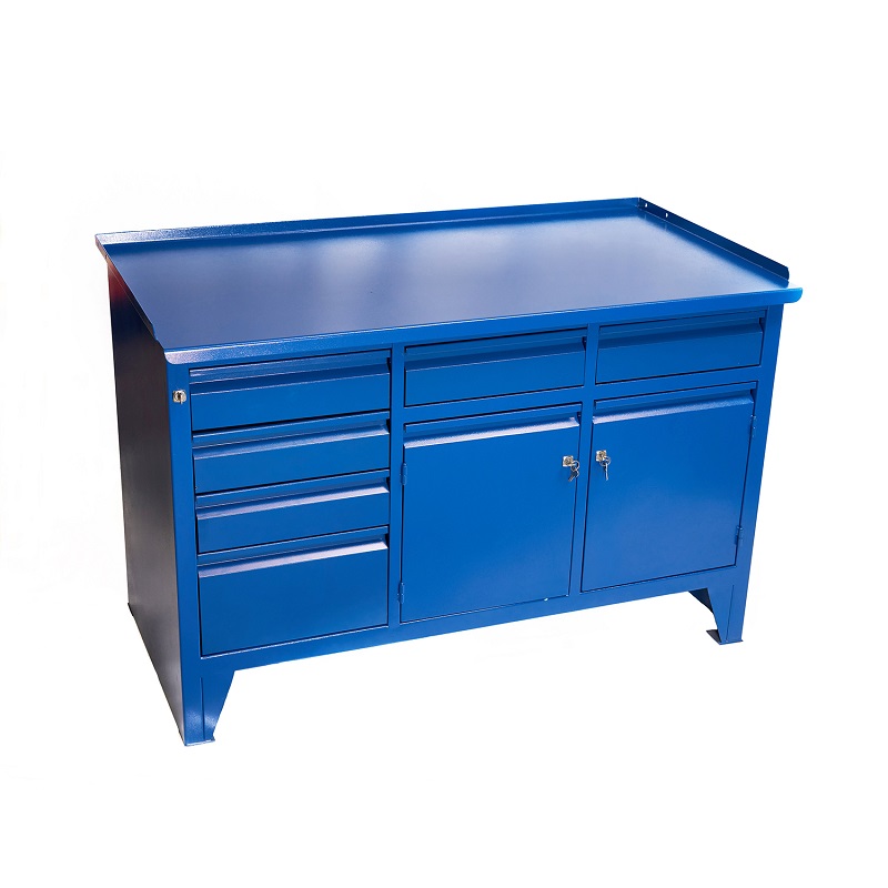 Верстак слесарный металлический ВВС-223-3, 3-х тумбовый, 870*1300*700мм, RAL5010 - надежная мебель, которая будет служить вам долгие годы!