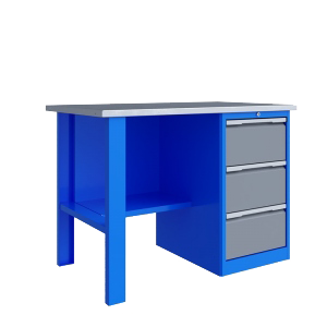 Тумба верстака -сварная. Ящики в тумбе устанавливаются на шариковых телескопических направляющих полного выдвижения. В тумбе P3 установлено три больших ящика. Внутренние размеры больших ящиков (ВхШхГ), не более: 222 х 397 х 520 мм. Тумбы с ящиками снабжены общим центральным замком с поворотом ригеля 180 градусов и подпружиненной тягой. В комплекте два ключа.