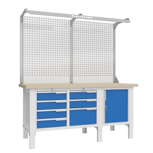 Регулировка рабочего места по высоте осуществляется в диапазоне от 700 до 950мм с шагом 25мм. Предусмотрена возможность тонкой регулировки усиленным резьбовым подпятником. Нагрузка на ящики верстака - до 40 кг, на полки - до 60кг. Общая распределенная нагрузка на рабочую поверхность 1500кг. Имеет возможность стыковки в единую рабочую поверхность с верстаками серии Constructor